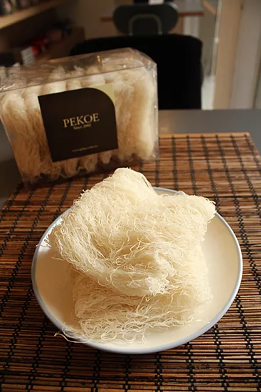 故而比起一般市售米粉來,這款本產新竹純米米粉,在色澤上較不透明,呈現出樸實的天然米白顏色,口感細緻鮮爽,散發濃郁的米香與淳厚甘甜的滋味,與普通米粉彈牙但單調寡味截然不同;只要吃過一次,便絕對難忘。